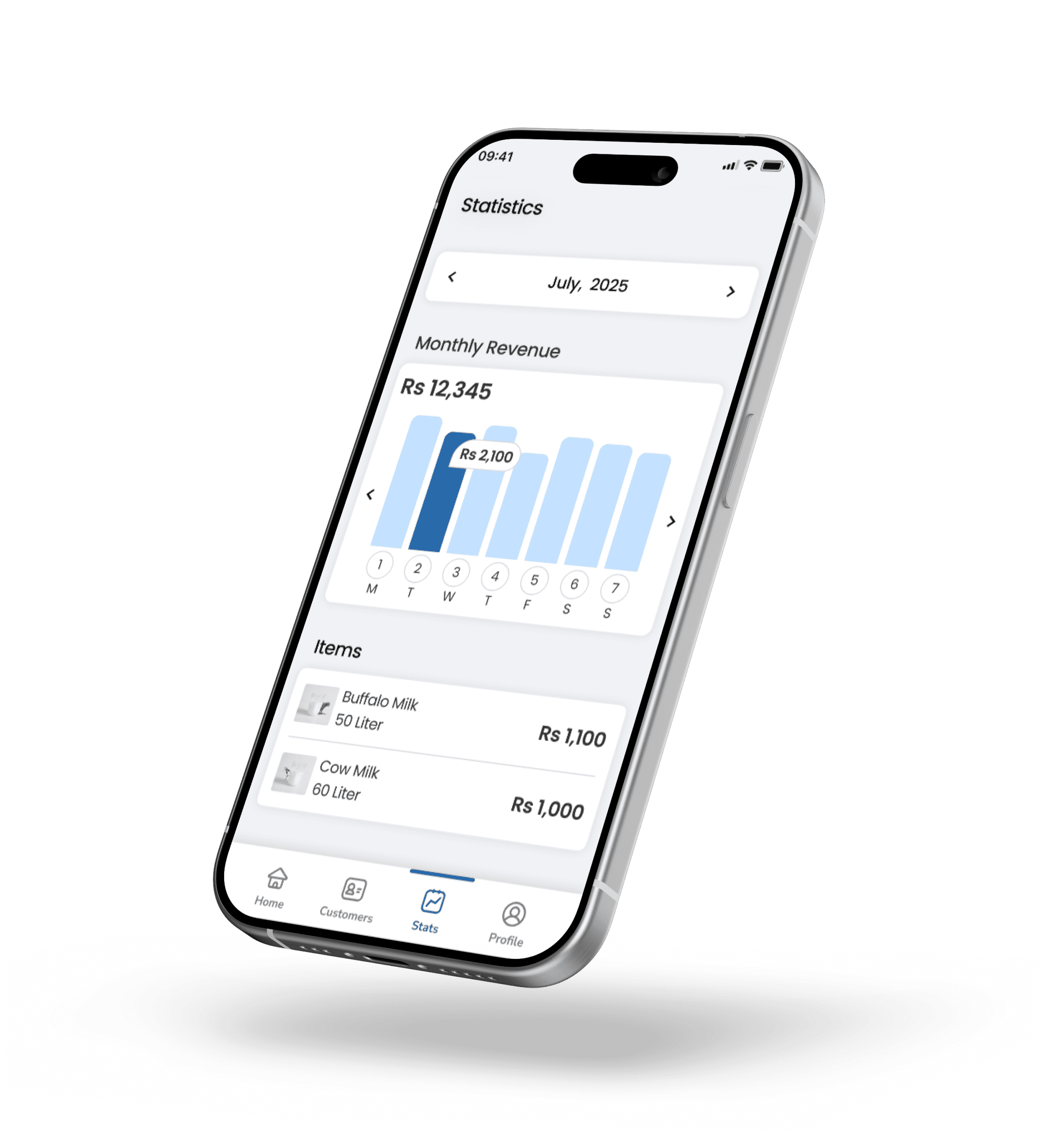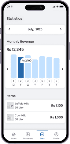 The Milkman mobile application is a tool that helps milk vendors easily track daily sales and keep records organized. It also allows customers to see their own purchase history, making the process clear and trustable for everyone.