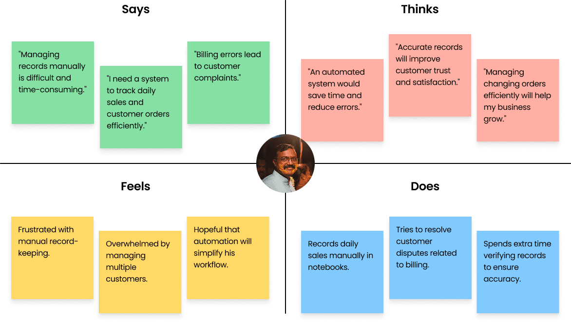 Rajesh delivers milk, tracks records manually, and wants to expand his business with a simpler, accurate system.