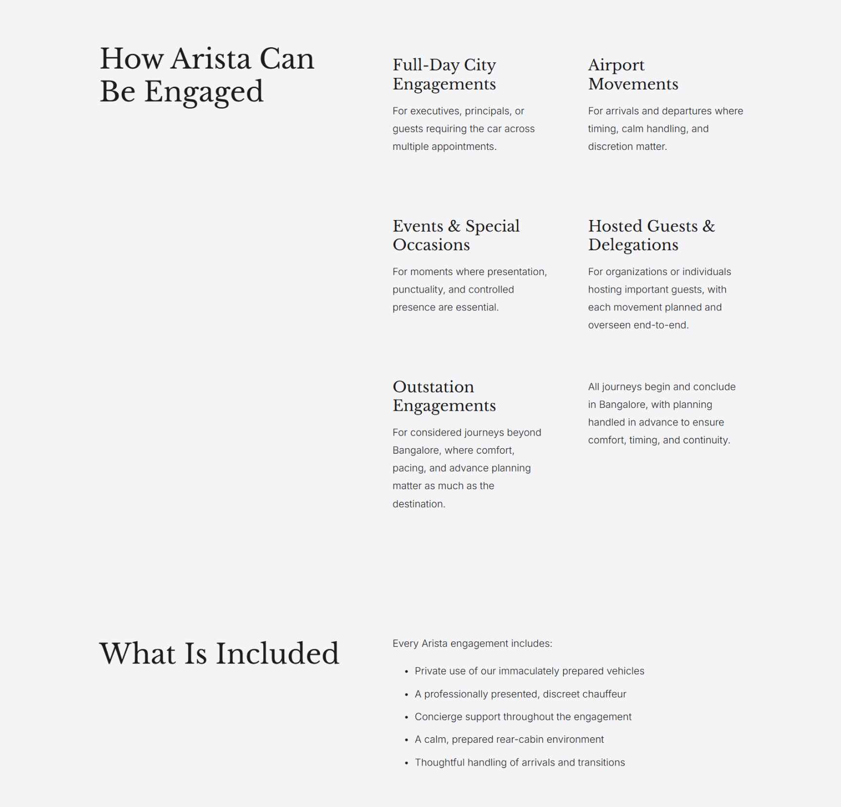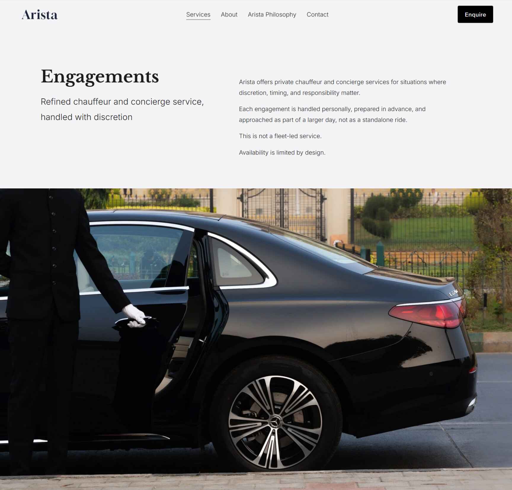 Arista is a luxury chauffeur-driven mobility brand. I joined at the co-founding stage, where my role spanned market research, service strategy, UX thinking, brand design, and digital execution. My focus was to help Arista stand out in a crowded luxury mobility market and present itself as a credible, partnership-ready brand from day one.